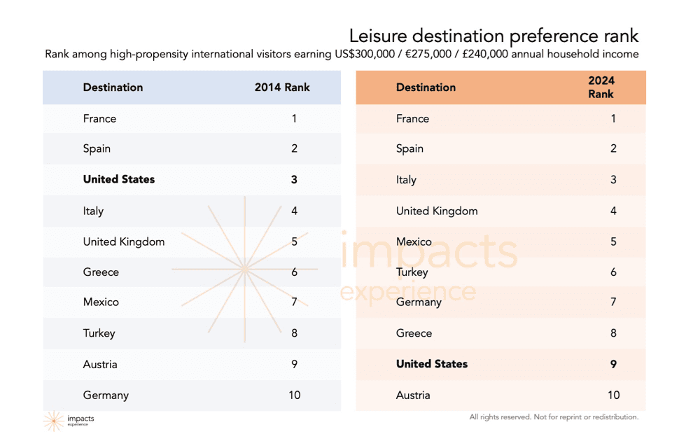 To be clear, international visitors who are not in this income bracket are also extremely important. But for the sake of this particular article exploring changing perceptions of the United States, we want to know preferences among those who have the most options.